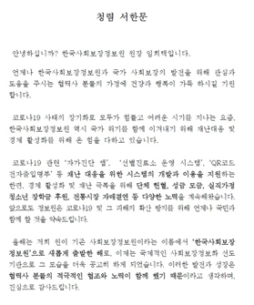 2020년 한국사회보장정보원 청렴서한문(출처=한국사회보장정보원)