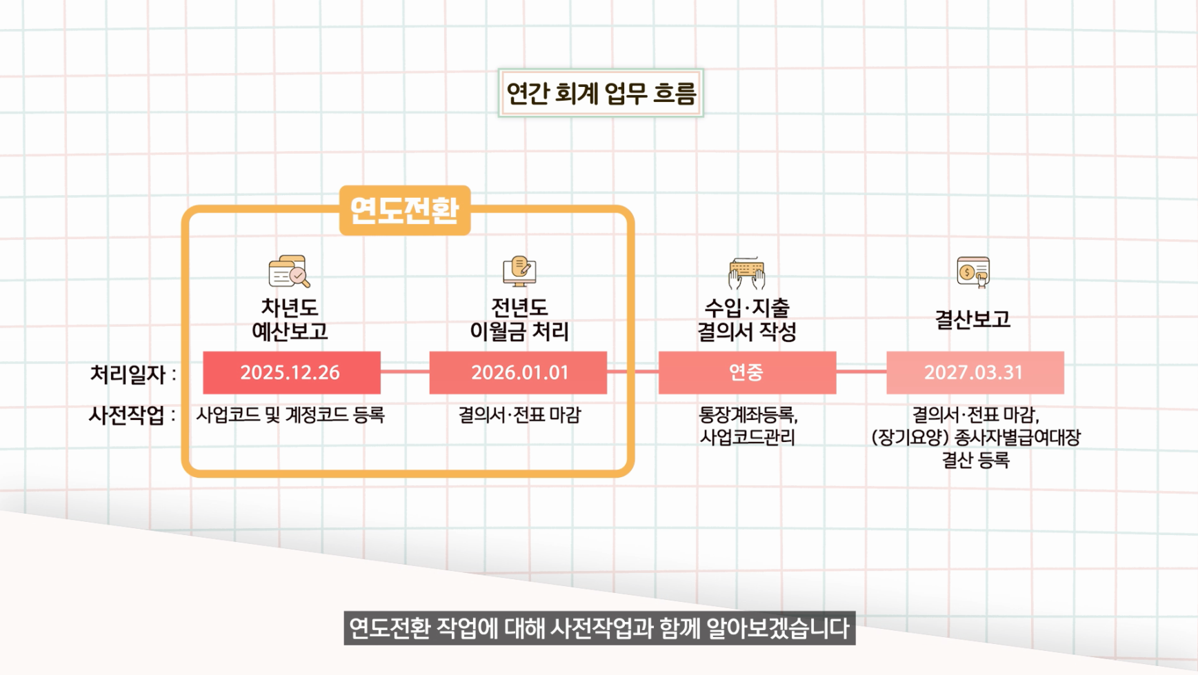 이번 콘텐츠는 약 3만7천 개 사회복지시설 사용자로부터 접수된 현장 의견과 반복 문의를 분석해 기획됐으며, 연도전환 시 매년 반복되는 혼선을 줄이고 보다 안정적인 회계 업무 수행을 지원하는 데 목적이 있다.