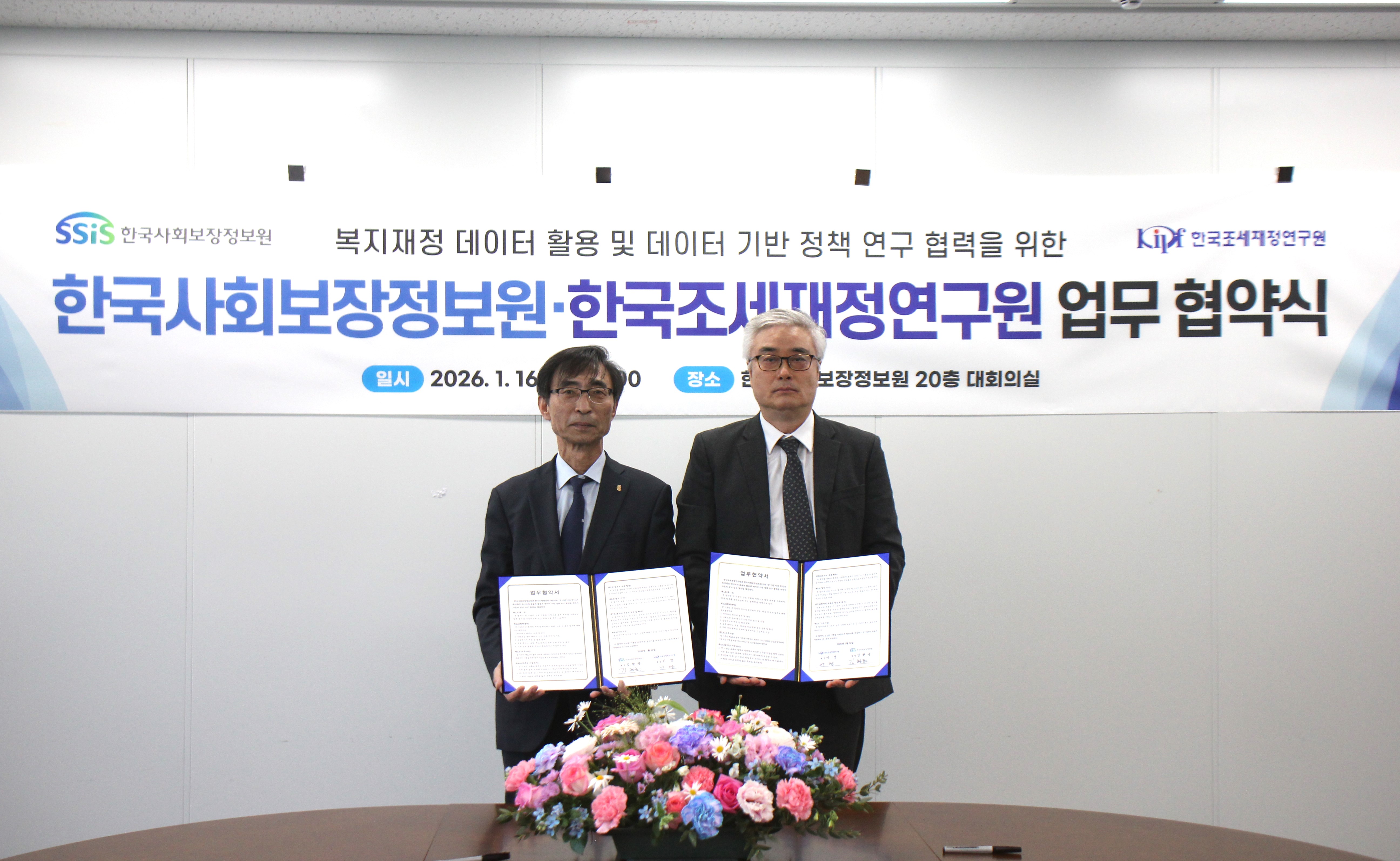 한국사회보장정보원(원장 김현준)과 한국조세재정연구원(원장 이영)은 지난 1월 16일, 복지재정 데이터의 효율적 활용과 데이터 기반의 정책 연구 협력을 위한 업무협약(MOU)을 체결했다고 밝혔다.