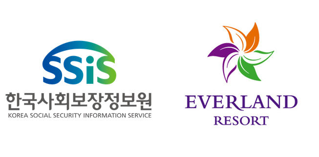 [사진 설명: 한국사회보장정보원 CI(왼쪽)와 에버랜드 리조트 CI / 한국사회보장정보원]