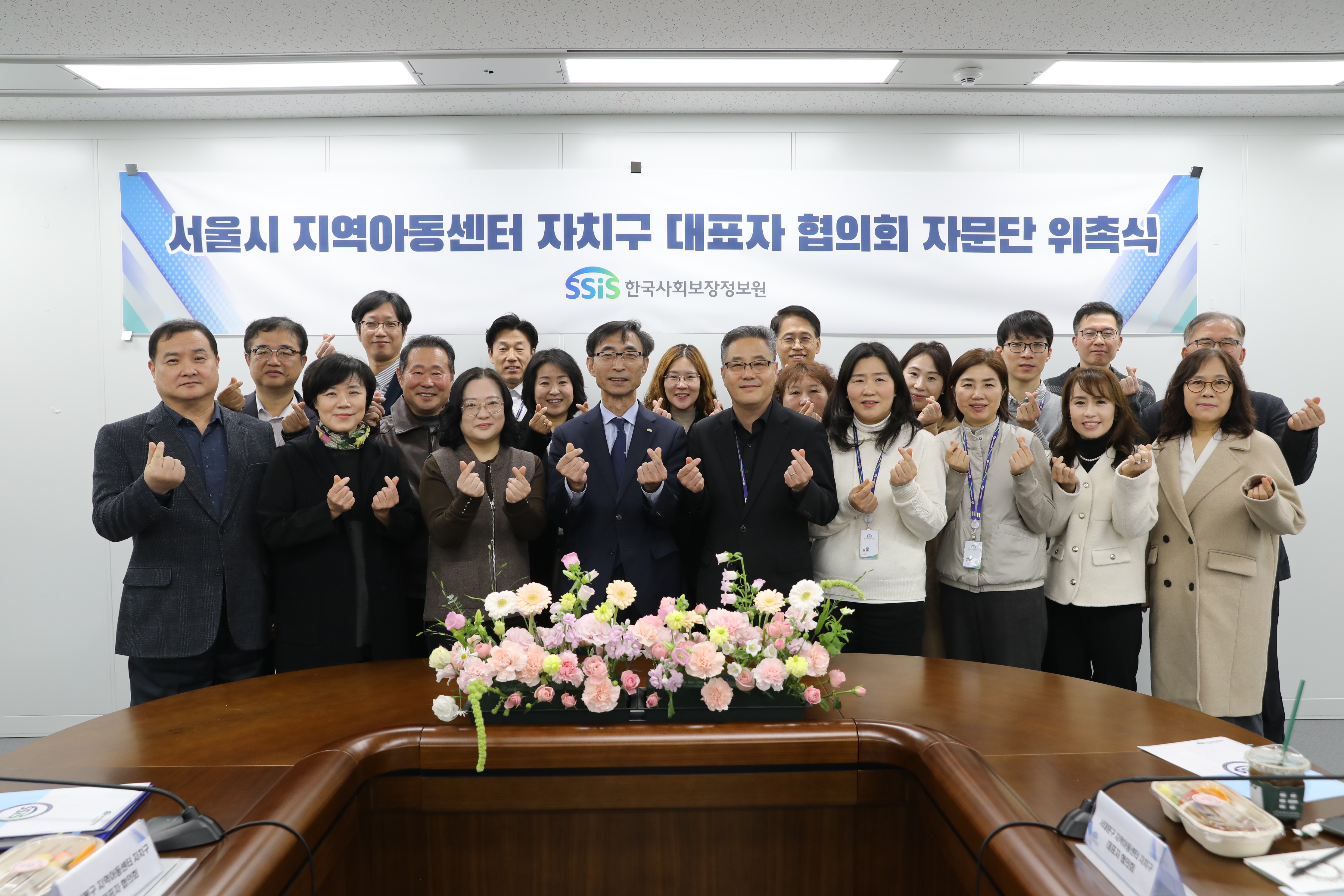 [사진 설명: 서울시 지역아동센터 자치구 대표자 협의회 자문단 위촉 기념사진 / 한국사회보장정보원]