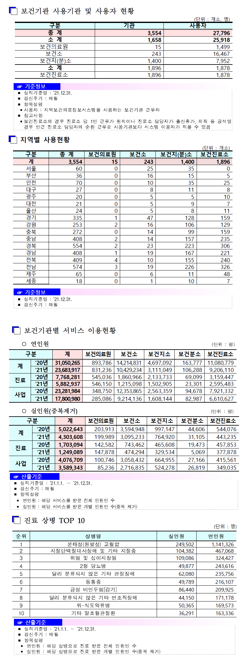 사회보장통계는 공공데이터포털에서도 검색하고 활용 하실 수 있습니다. 공공데이터포털 바로가기 (수정후)지역보건의료정보시스템 주요업무 통계(2021.12.31. 기준) 작성자 보건의료정보부 등록일 2022-01-17 조회수 1597 첨부파일 지역보건의료정보시스템 주요업무 통계(2021.12.31.기준).pdf 이전글 (수정전)지역보건의료정보시스템 주요업무 통계(2021.12.31. 기준) 2022-01-14 다음글 2022년 1월 보육사업통계 2022-02-01 목록 만족도 평가이 페이지에서 제공하는 정보에 얼마나 만족하십니까? 매우만족 만족 보통 불만족 매우불만족 평가